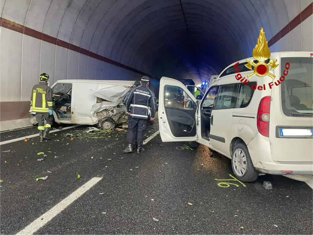 Un furgone Renault Trafic e un Kangoo si sono scontrati violentemente all’interno della galleria: ferito in modo grave il conducente del Trafic, stabilizzato in ambulanza sul posto ,è stato successivamente trasportato con elisoccorso per la centralizzazione in ospedale per le cure del caso.