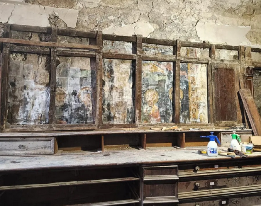 Scoperti affreschi del 1400 durante i restauri della Basilica di San Benedetto a Norcia