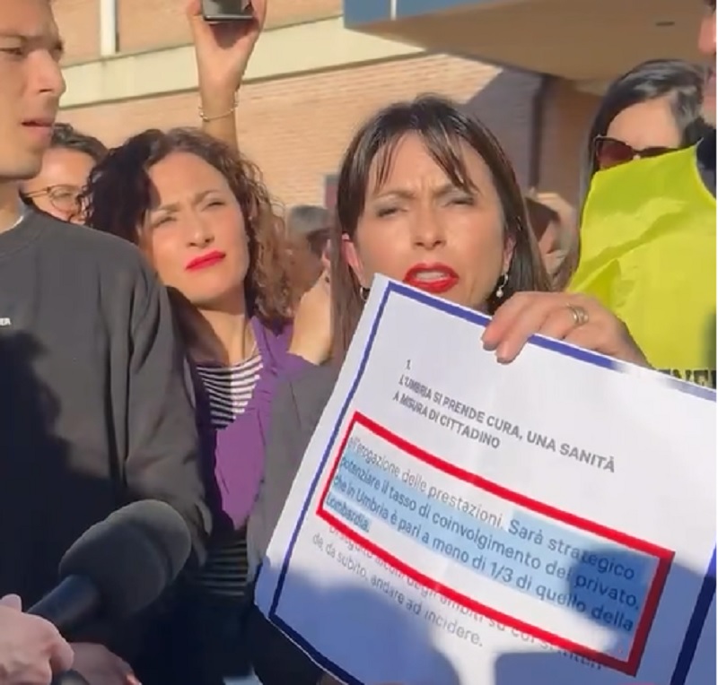 “C’è chi già cinque anni fa aveva nel programma elettorale il supporto della sanità privata. Così hanno messo in ginocchio quella pubblica qui in Umbria”, sottolinea.