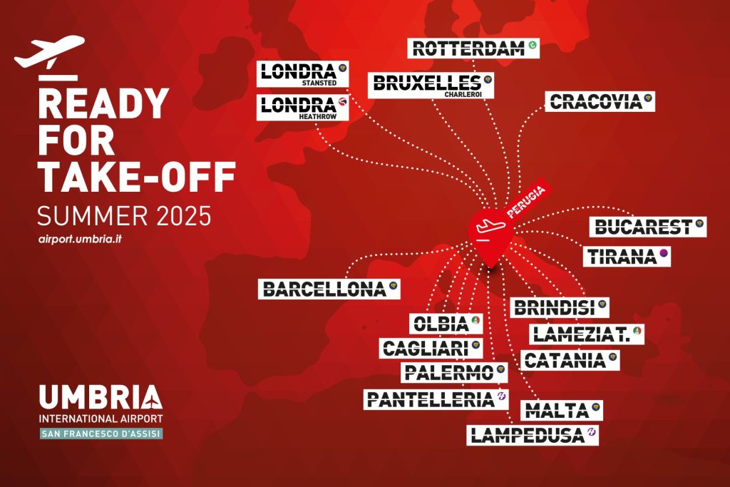 Programmazione estiva 2025 all’Aeroporto di Perugia: 17 rotte e oltre 580.000 posti offerti