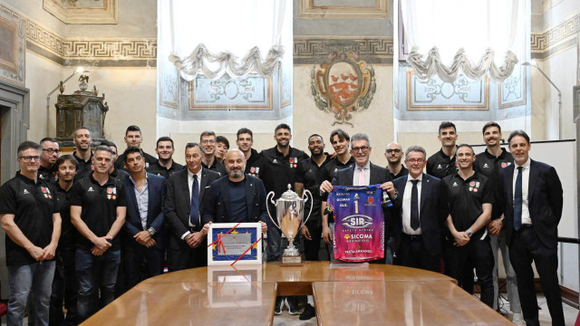 Anche il vicepresidente della Giunta regionale Tommaso Bori e la presidente dell’Assemblea regionale Sarah Bistocchi hanno voluto rendere omaggio alla Sir. “Per noi è motivo di vanto, è un grandissimo onore avervi qui – ha detto la presidente Bistocchi – ci avete reso grandi, ci avete reso orgogliosi. C’è una cosa che credo accomuni e che è rappresentato dal gioco di squadra: riuscire a capirsi con il compagno con un con uno sguardo, riuscire a portare a casa un risultato che non è di una persona, di un singolo, ma di un gruppo”.