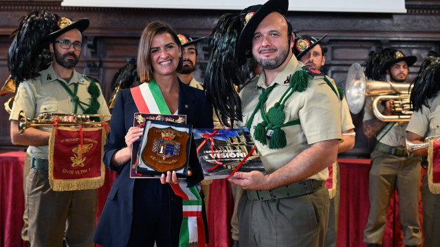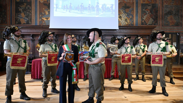 Uno dei momenti più istituzionali si è svolto all’interno della Sala dei Notari, dove è stata presentata ufficialmente la Fanfara dell’11° Reggimento Bersaglieri, formata da militari professionisti in servizio a Orcenico Superiore (PN). Il comandante Silvestrini ha illustrato la composizione e le attività della fanfara, attiva sia in Italia sia all’estero. Alla cerimonia è seguito lo scambio di doni ufficiali con la sindaca Ferdinandi.