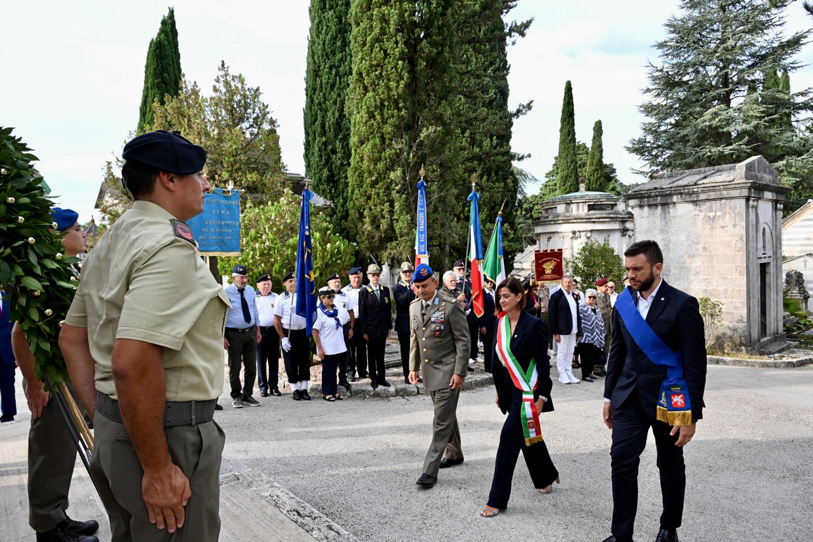 La giornata si è aperta con la deposizione di una corona al Monumento ai Caduti nel cimitero civico, seguita da un momento particolarmente sentito dai perugini: l’omaggio alla statua del Bersagliere presso Porta Sant’Antonio. A rendere l’onore, la sindaca di Perugia Vittoria Ferdinandi, il colonnello Stefano Silvestrini del Comando Militare Esercito Umbria, e il consigliere provinciale Riccardo Vescovi. Hanno partecipato anche numerose personalità istituzionali e associative, tra cui la deputata Emma Pavanelli, le forze dell’ordine, il presidente dell’associazione Borgo Sant’Antonio-Porta Pesa Francesco Pinelli, e rappresentanti di varie realtà civiche e militari.