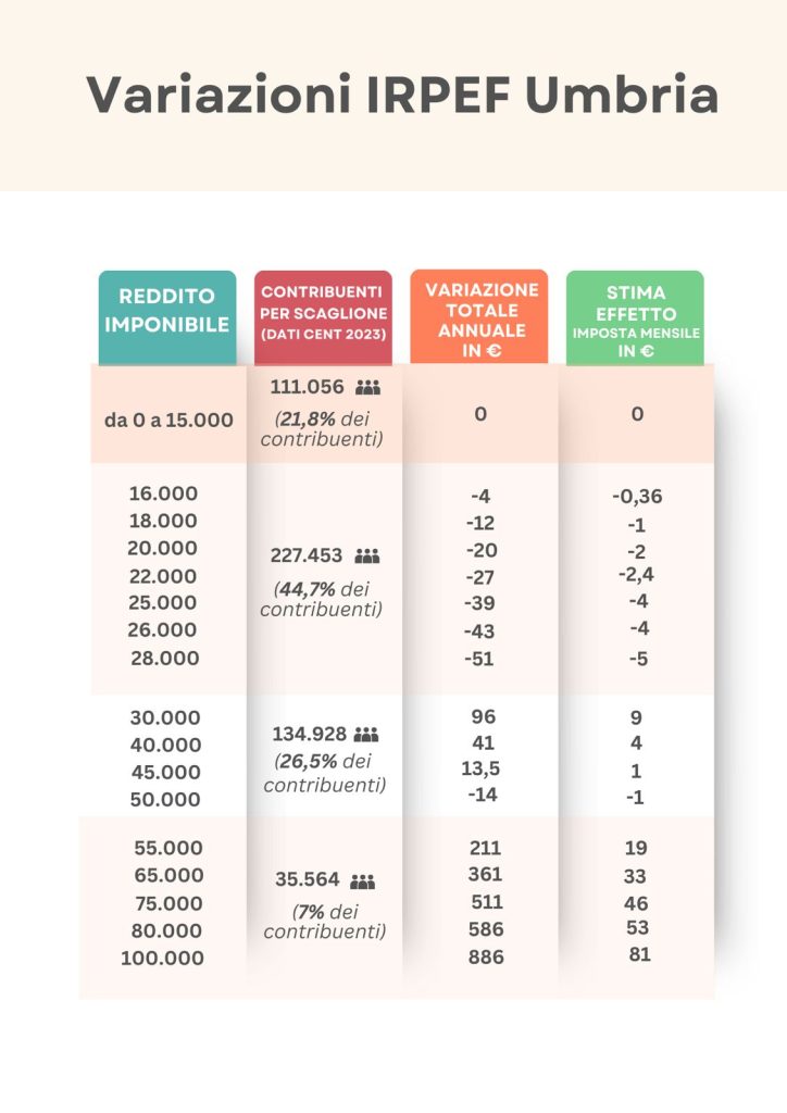 La Regione Umbria fa chiarezza sulla rimodulazione dell’addizionale Irpef prevista per il 2026, confermando che due umbri su tre non pagheranno aumenti o, addirittura, pagheranno meno tasse rispetto al passato. La misura fiscale, oggetto di alcune recenti speculazioni errate, prevede una serie di modifiche che impattano principalmente sui redditi più bassi, con vantaggi concreti per molti contribuenti.
