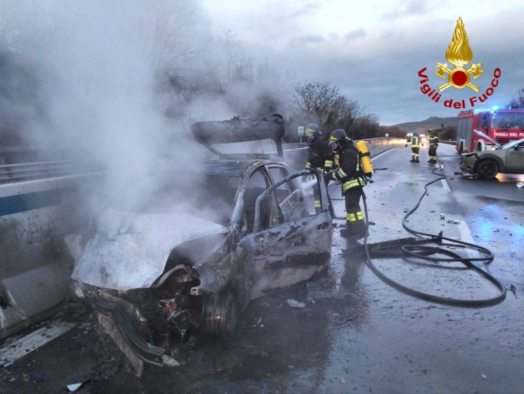 Incidente sulla Perugia-Bettolle: va a fuoco un’auto, due feriti